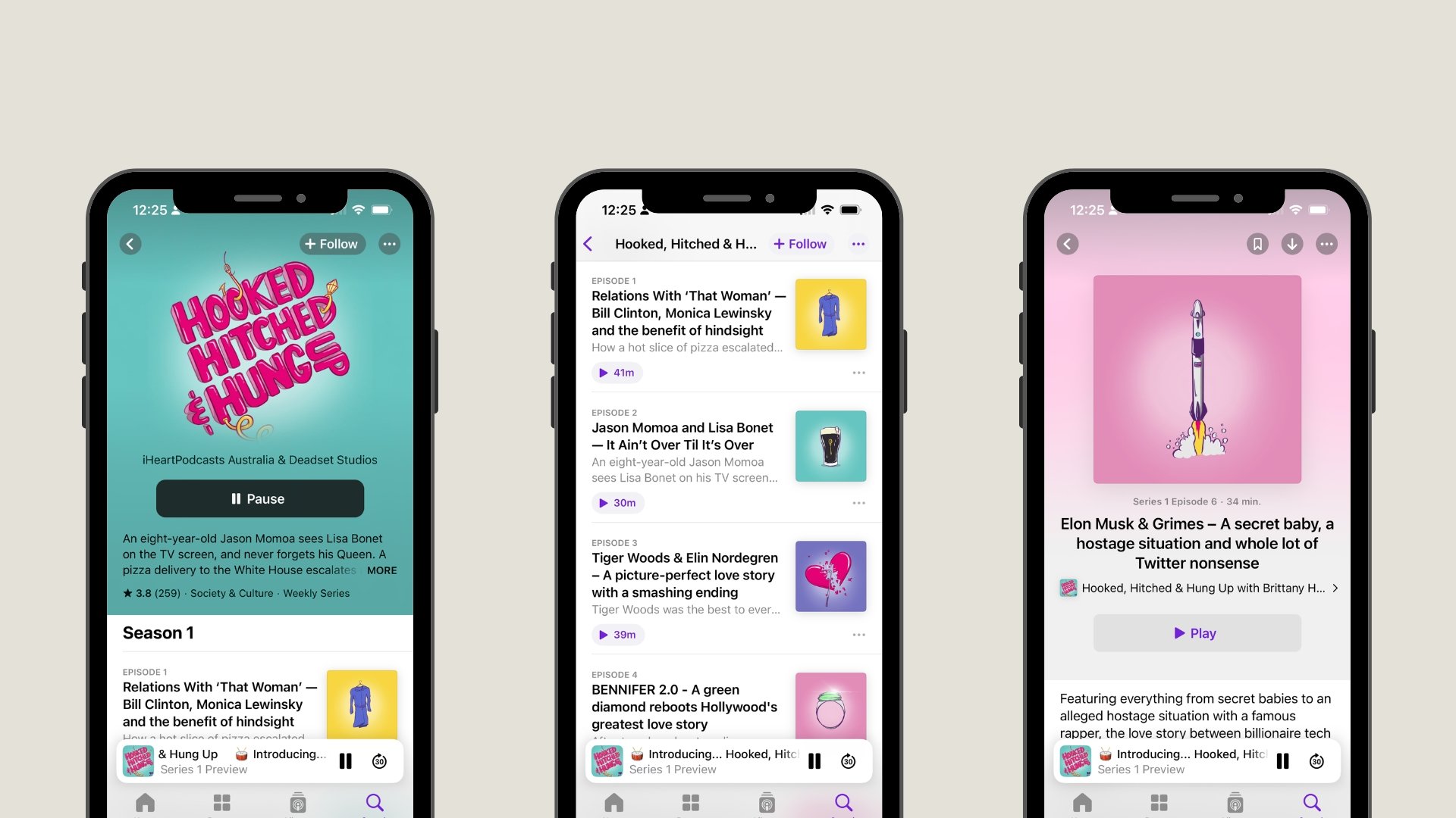 Under the Patch Creative banner, Jimmy created a hand-illustrated design the juicy pop-culture podcast, Hooked, Hitched & Hung-Up. The typographic cover artwork need to be clever, eye-catching and fun; whilst the episodic artwork singled out conversational themes and their entertaining guests.